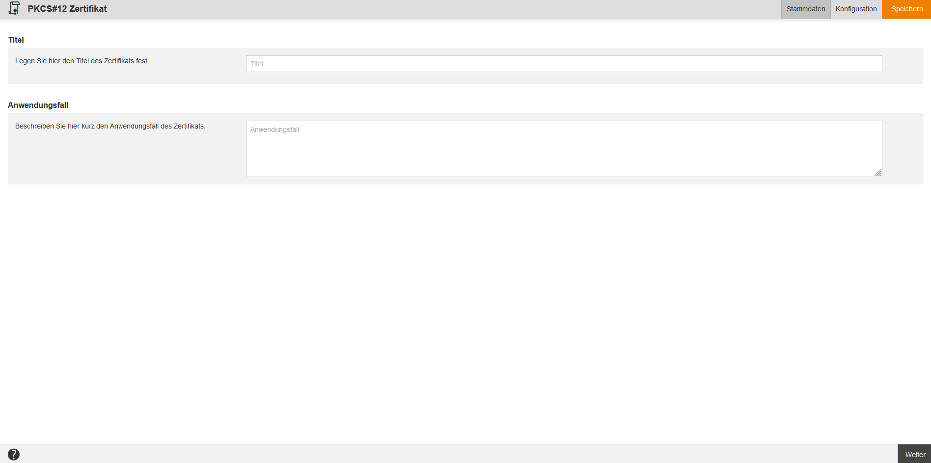 In der Ansicht PKCS#12-Zertifikate können Sie Authentifizierungs-Zertifikate erstellen und verwalten. Diese werden zum Beispiel für die sichere Anmeldung (mTLS) beim Redirect-Webservice verwendet. Auch Content-Connectoren und Anbieter nutzen diese Zertifikate.