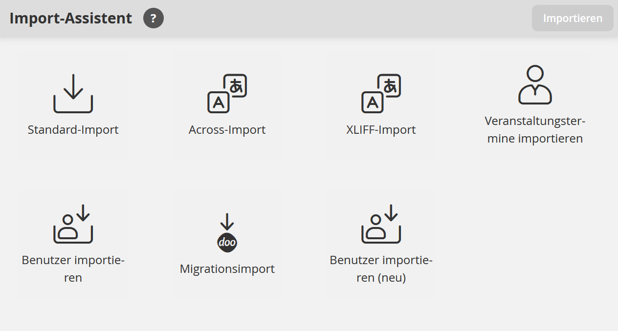 In Avendoo haben Sie die Möglichkeit, Lerninhalte, Benutzer oder Veranstaltungstermine zu importieren. Dies ermöglicht die Vereinfachung des manuellen Prozesses, z.B. für das Übersetzen oder das Anlegen mehrerer Benutzer.