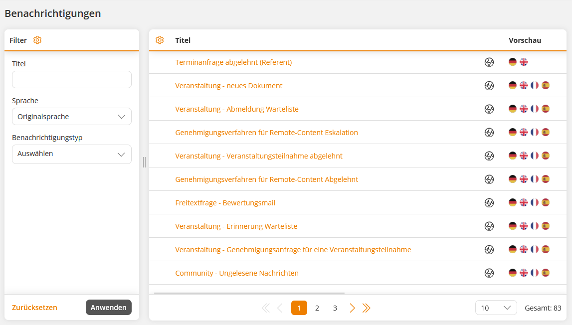Avendoo stellt für jeden Nachrichtentyp systemweite Standardtexte bereit, die vom Autor inhaltlich angepasst werden können. Darüber hinaus lassen sich mithilfe individueller Benachrichtigungen eigene Varianten erstellen, die gezielt für bestimmte Szenarien eingesetzt werden können.