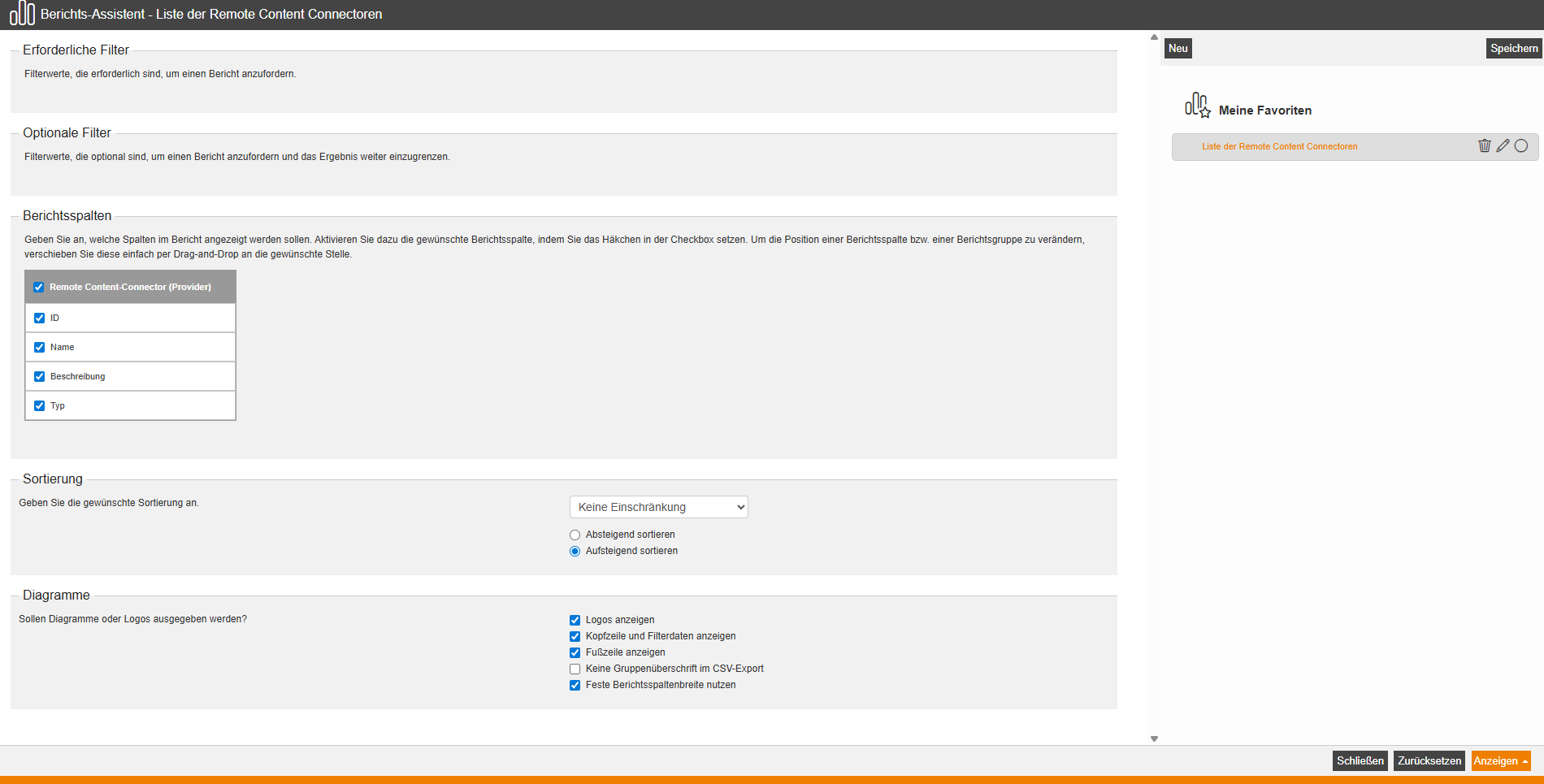 Für Benutzer-Teamleiter steht ein neuer Bericht "Liste der Remote Content Connectoren" zur Verfügung. Für diesen Bericht kann ein Drilldown-Bericht auf "Teilnehmer von Remote Content" konfiguriert werden.